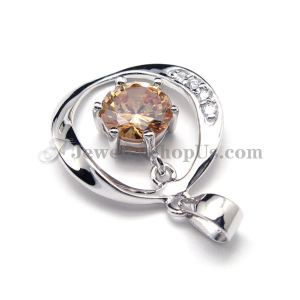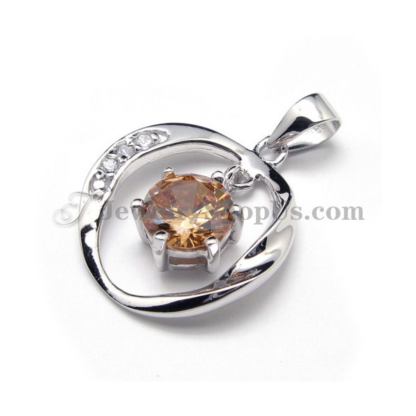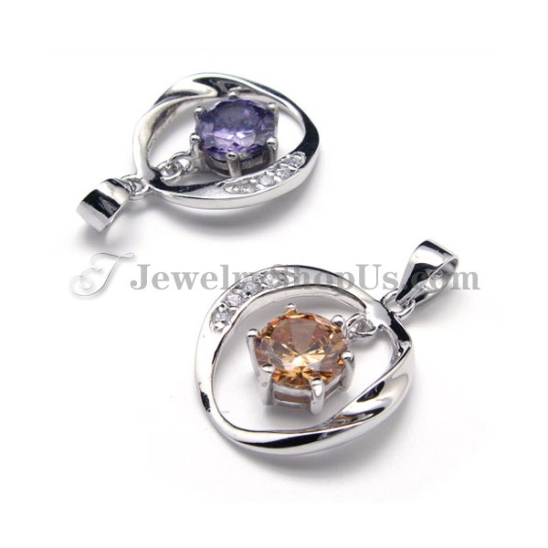 925 Silver Zircon Pendant (Electroplating platinum) with Free Chain