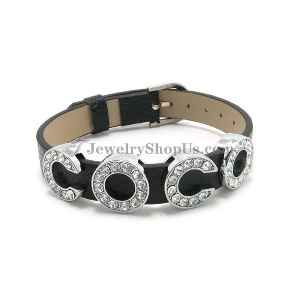 Leather and Alloy Bracelet with Words "coco"
