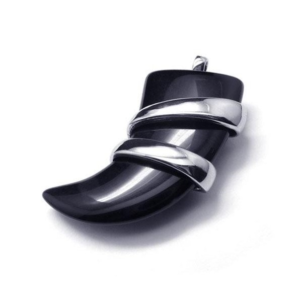 Men's Pure Titanium Onyx Spear Pendant Necklace Chain 17560