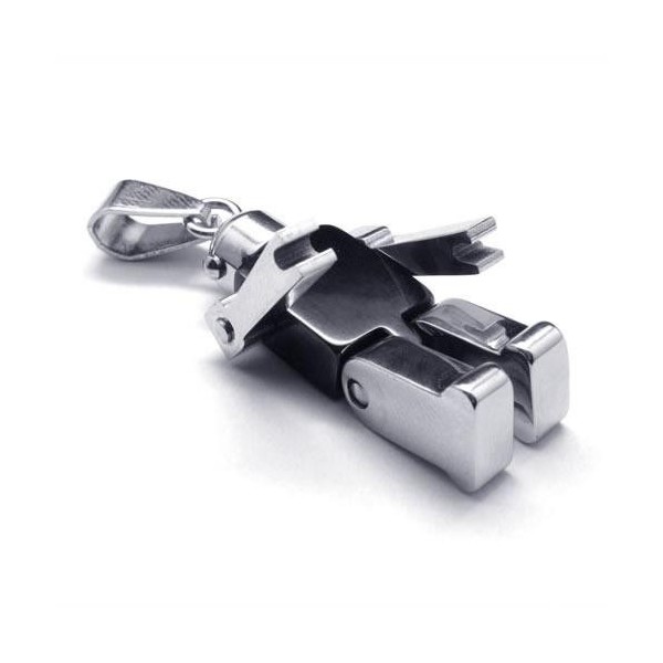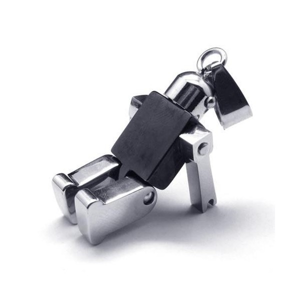 Men Black Silver Robot Pure Titanium Pendant Necklace 17516