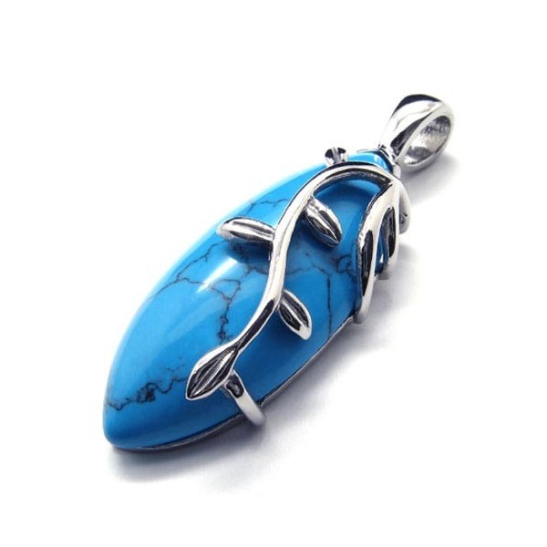 Fashion Blue Carnelian Titanium Pendant - Free Chian 16923