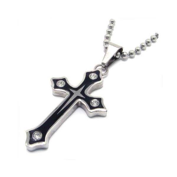 Fashion Black plate Cross Titanium Pendant with diamonds 10483