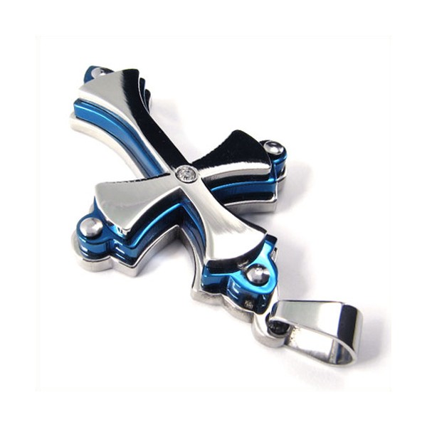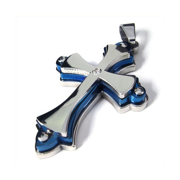 Three Layers Cross Titanium Pendant (Blue) 19084