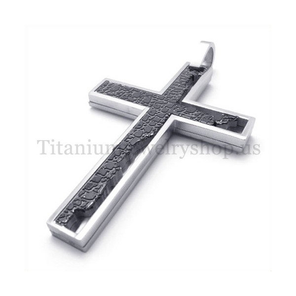 black incomplete fill quadrate titanium cross pendant 19666