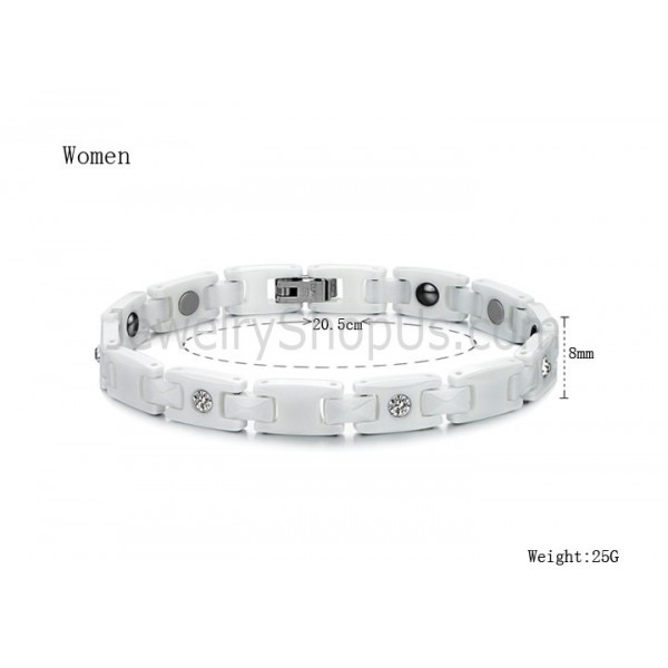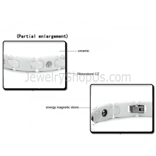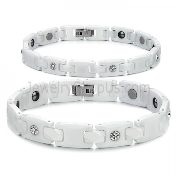 Healthy White Ceramic Couple Bracelet with Rhinestones C419