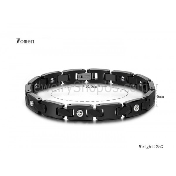 Healthy Black Ceramic Couple Bracelet with Rhinestones C419