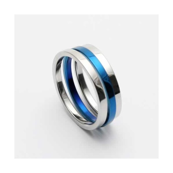Mens 6mm Blue & Silver Colour Titanium Ring