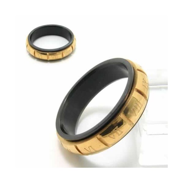 Roman Numerals 6mm Black Titanium & Gold Court Band Ring