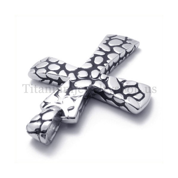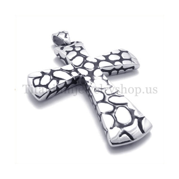 silver scree pattern titanium cross pendant 19592