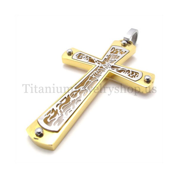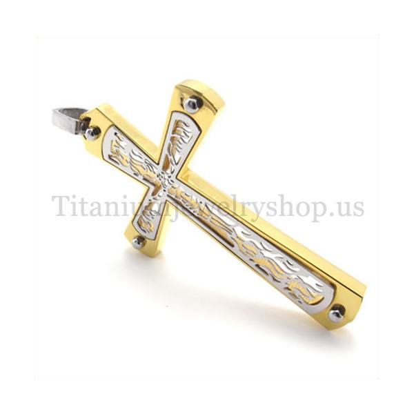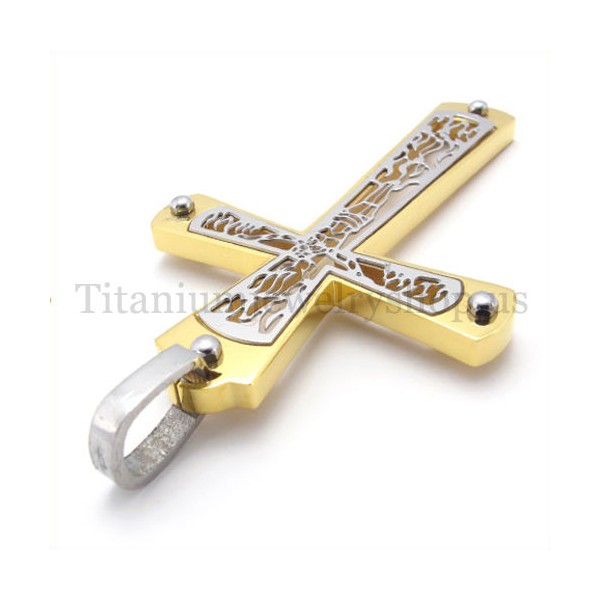 gold embedded hollow cross pattern fashion titanium cross pendant 19678