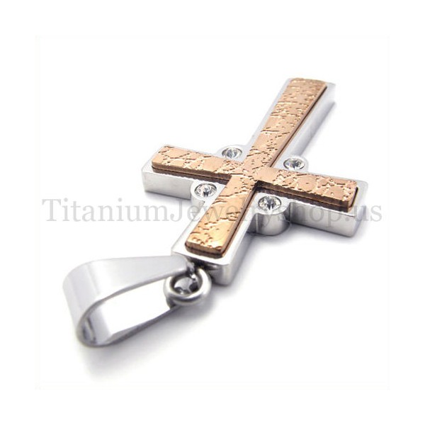 fashion coffee golden two layer titanium cross pendant 19630