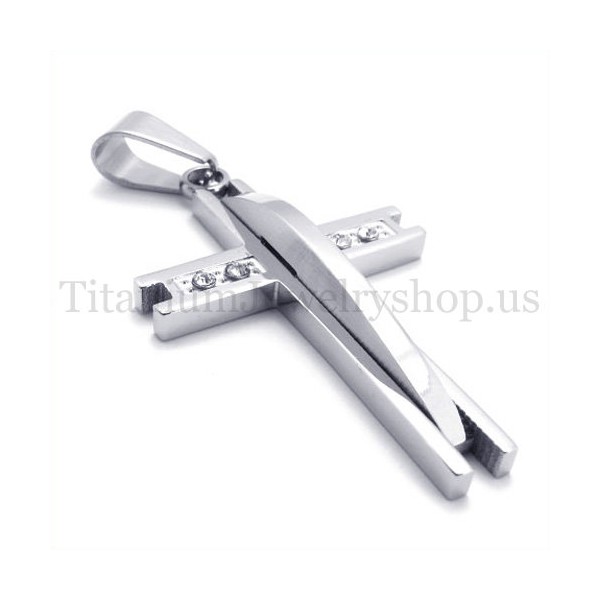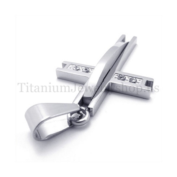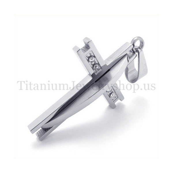 silver with diamond fashion titanium cross pendant 19631