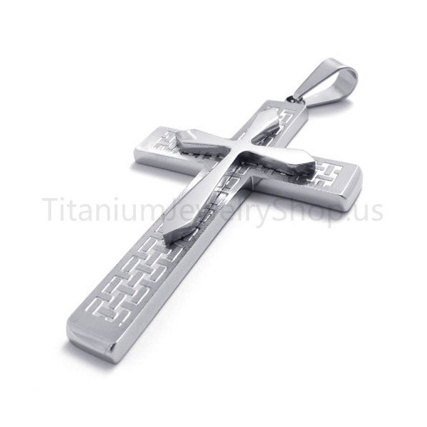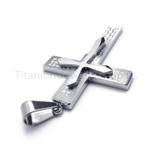 2012 New Two Layers Silvery Cross Titanium Pendant 20151