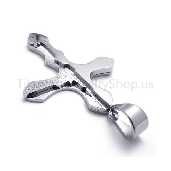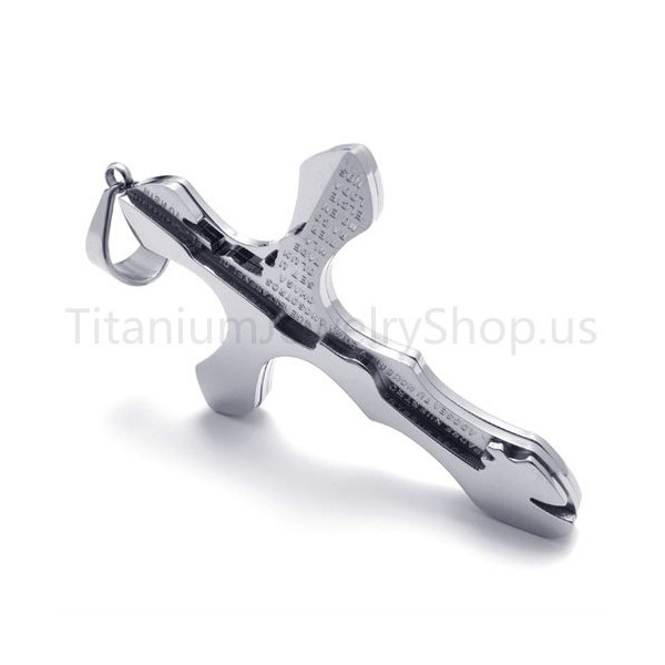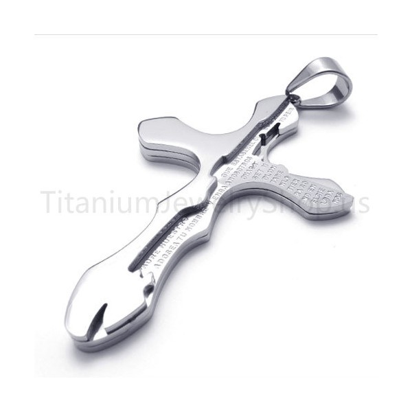 2012 New Silvery Carving Letters Cross Titanium Pendant 20160