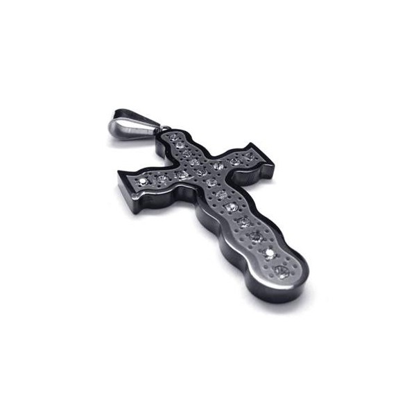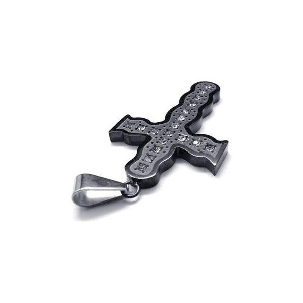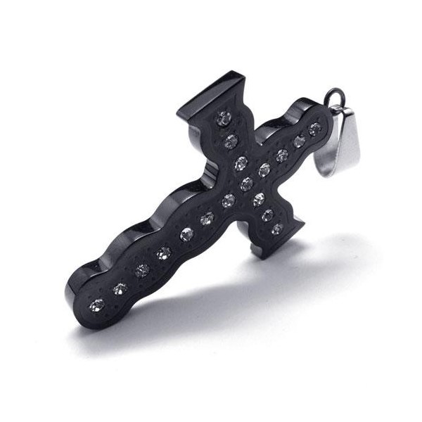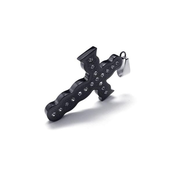 Mens Black Pure Titanium Pendant Cross Necklace Chain