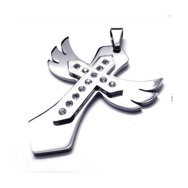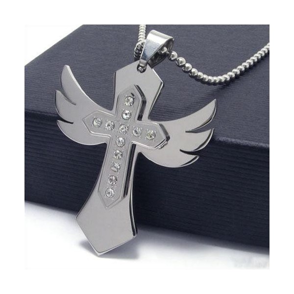 Mens Silver Pure Titanium Cross Necklace Wing Pendant 10496