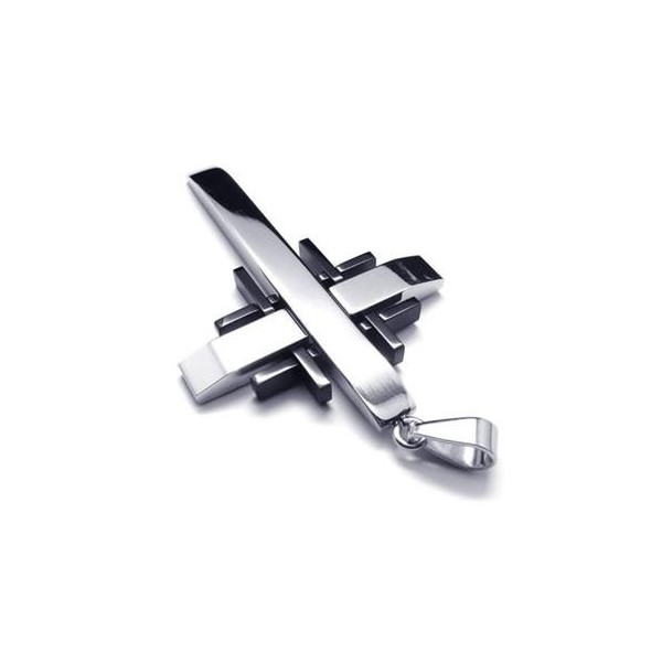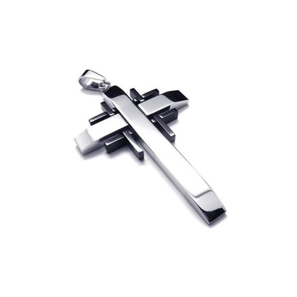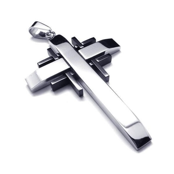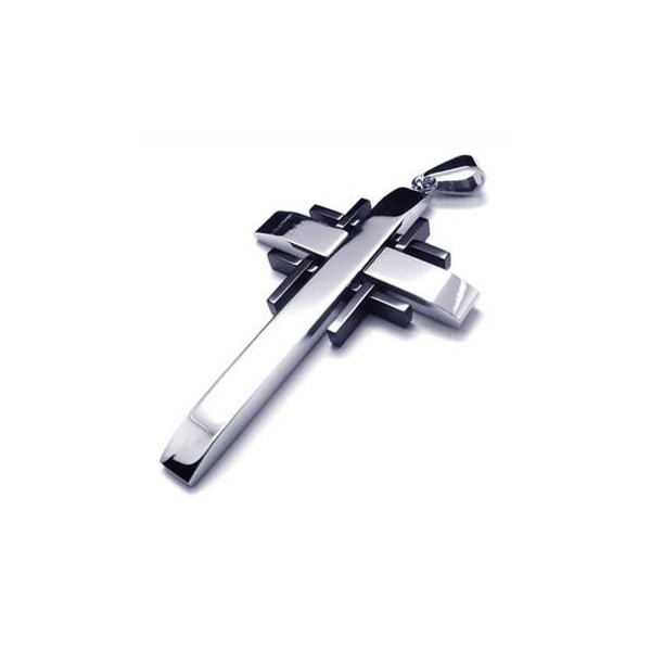 Men Black Silver Pure Titanium Cross Necklace Pendant