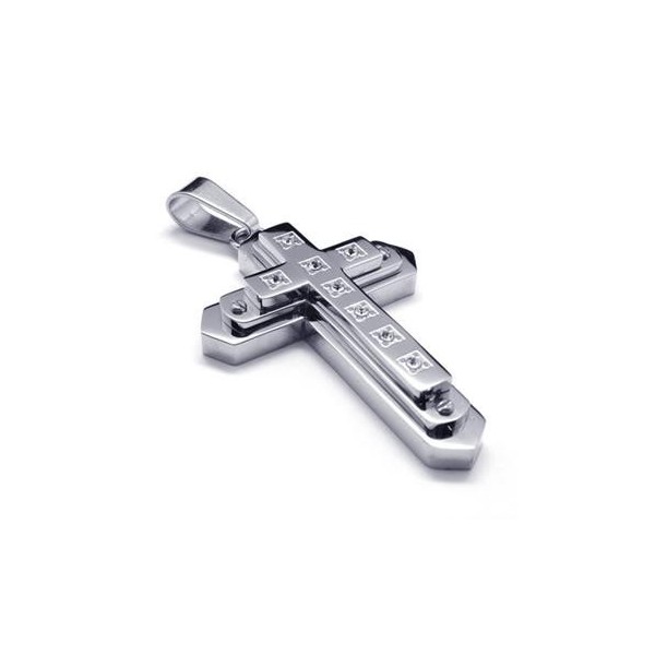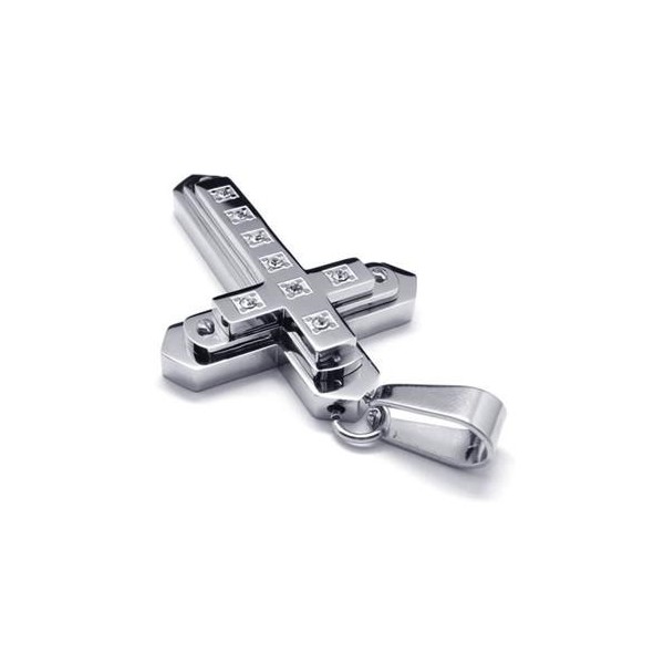 Men Silver Pure Titanium Cross Necklace Pendant Chain 15767