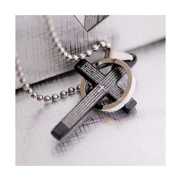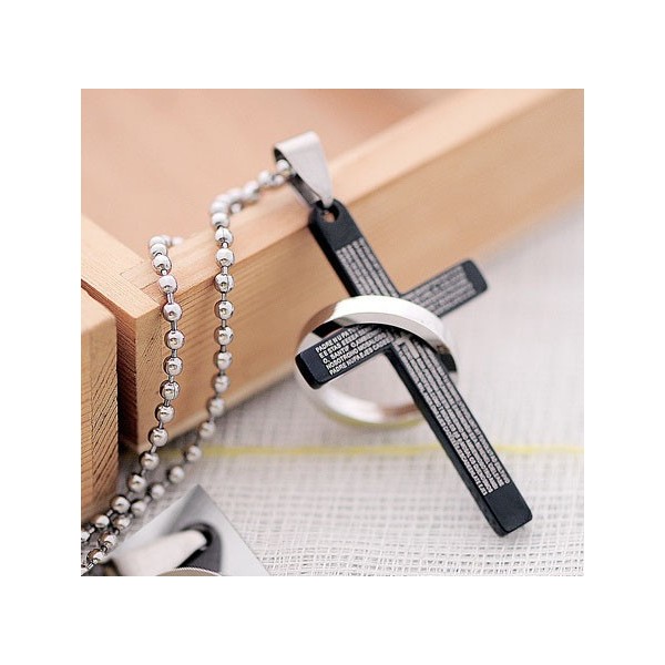 Classical Black Holy Bible Men's titanium Cross Pendant
