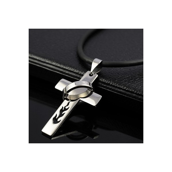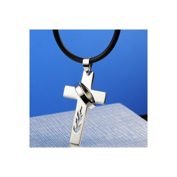 Boys Flame Titanium Cross Necklace Pendant