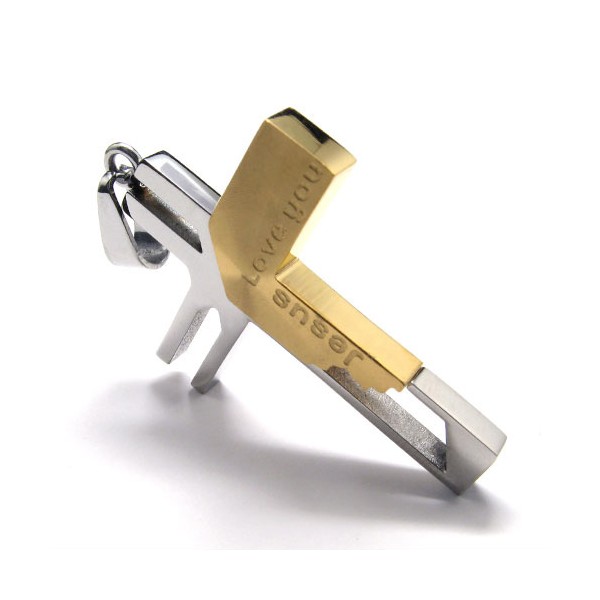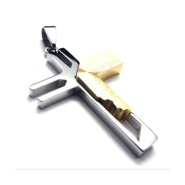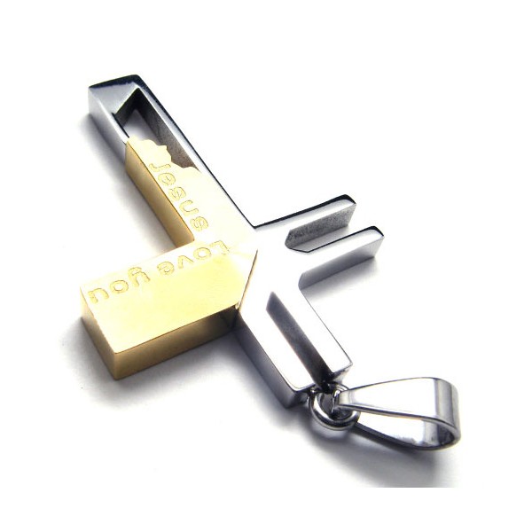 Love You Jesus Cross Titanium Pendant (Golden) 17753