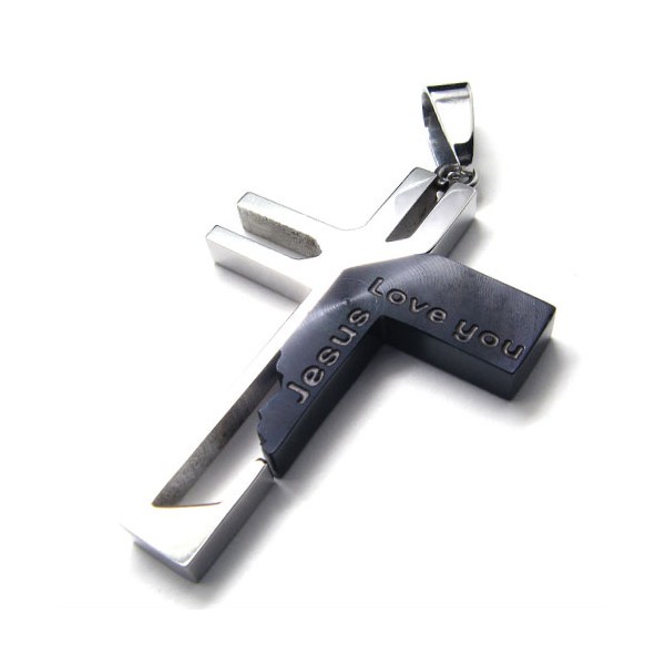 Love You Jesus Cross Titanium Pendant (Black) 17754