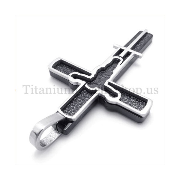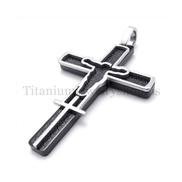 black carved jesus pattern titanium cross pendant 19675