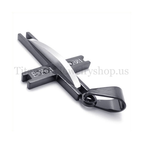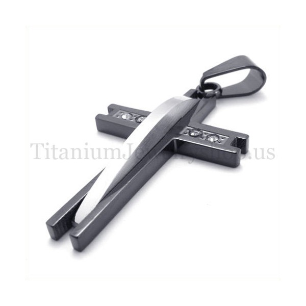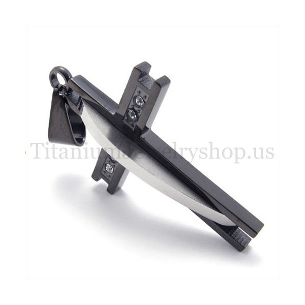 black with diamond fashion titanium cross pendant 19633