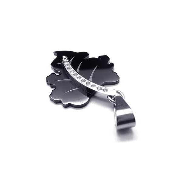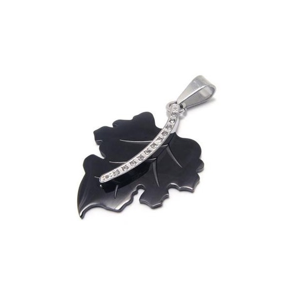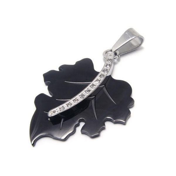 Black Pure Titanium Maple Leaf Pendant Necklace Chain 14672