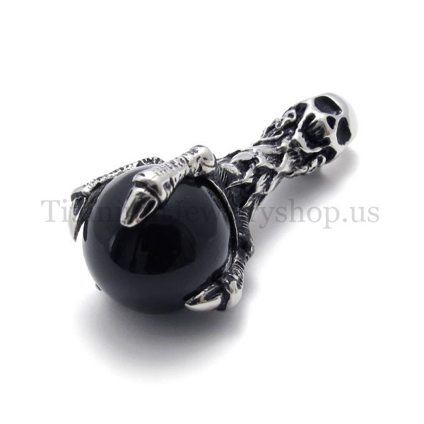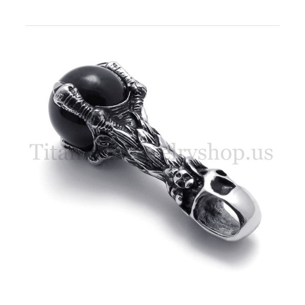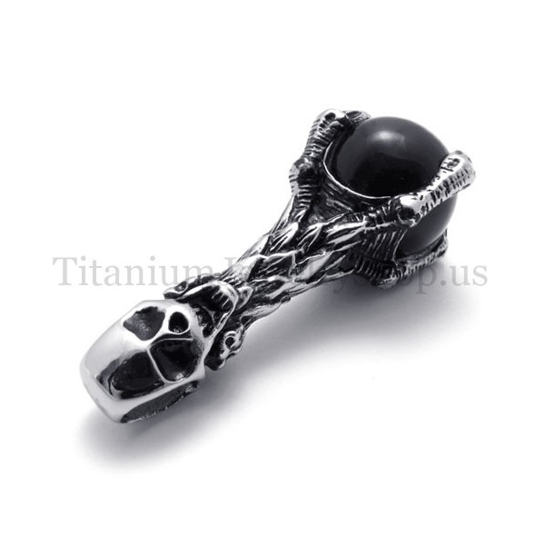 skull holding a black gem pure titanium pendant 20081