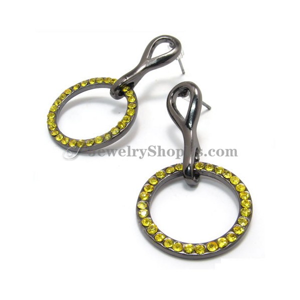 Beautiful Circle Alloy Earrings with Yellow Rhinestones