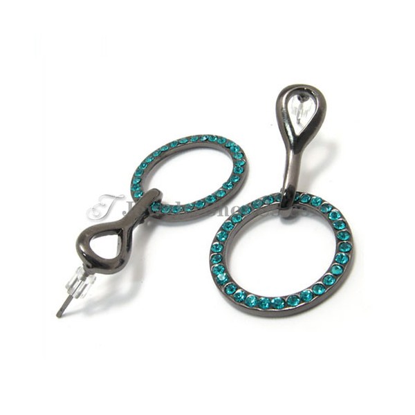 Beautiful Circle Alloy Earrings with Green Rhinestones