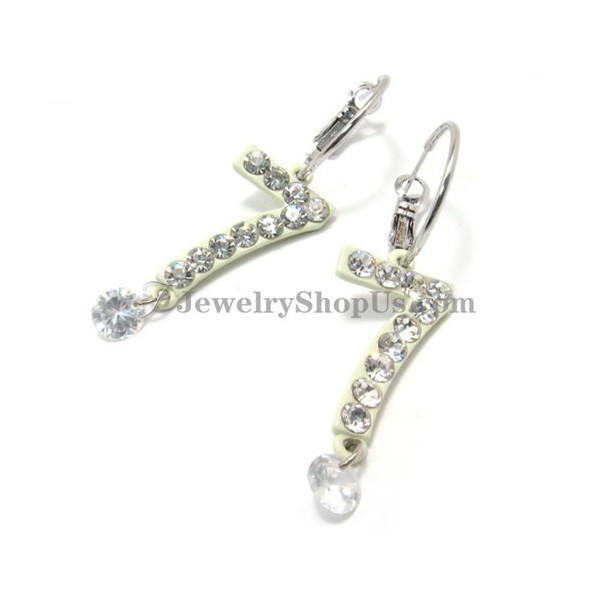 Number "7" Shape Earrings with Rhinestones