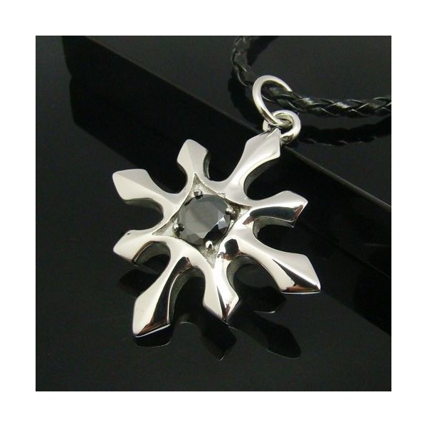 man's titanium steel cross with black agate pendant