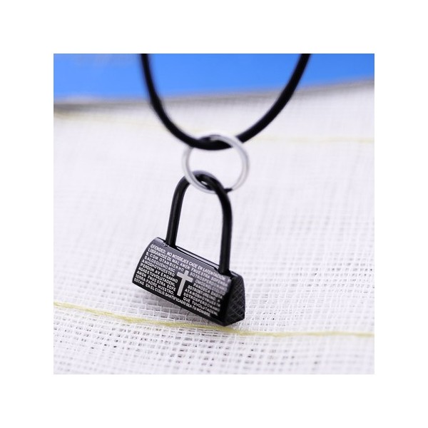 Fashion Black Lock with Bible verse and Cross Titanium necklace pendant