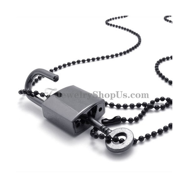 Fashion Black Alloy Lock and Key Pendants
