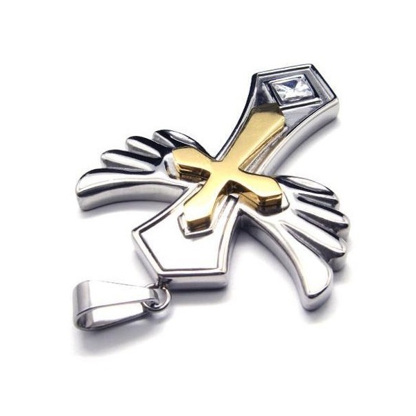 Angle Wing Golden Cross titanium steel Pendant Free Chain