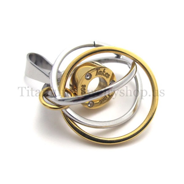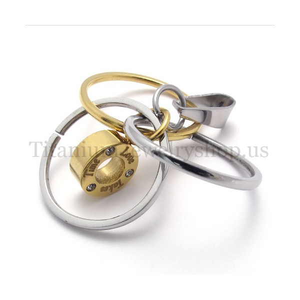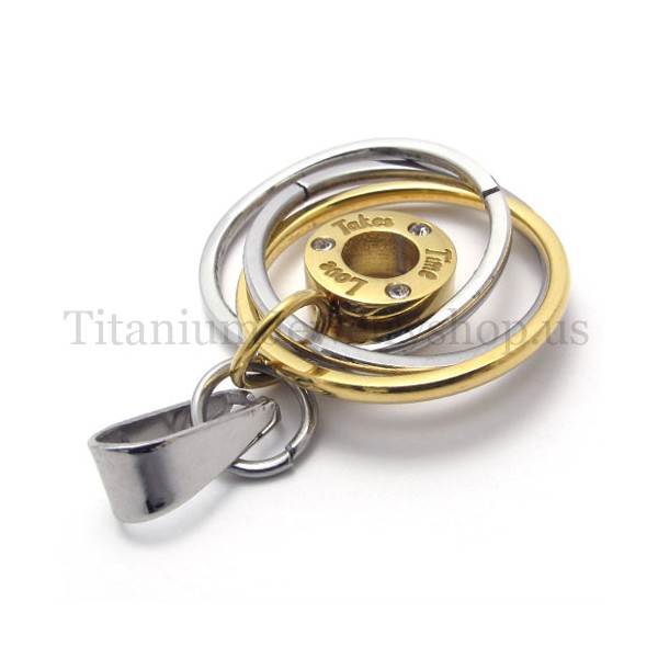 gold Multi-ring engraved with "take time love" titanium pendant 20018