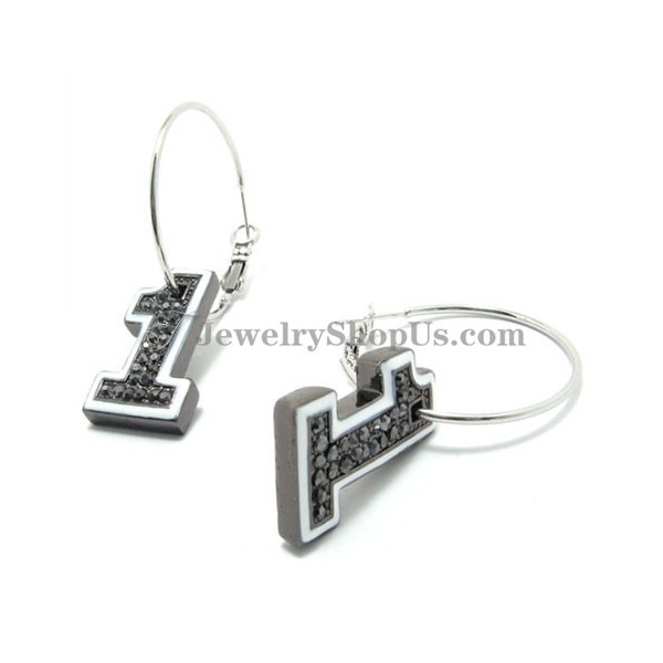 Number "1" Shape Alloy Earrings with Black Rhinestones