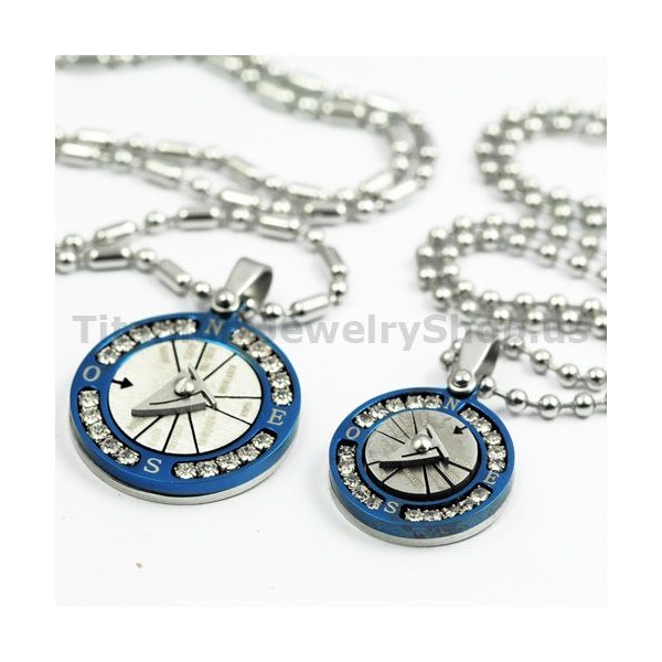 Compass Lovers Titanium Pendants with Diamonds Valentine's Day Gifts - Free Chains