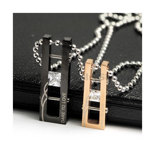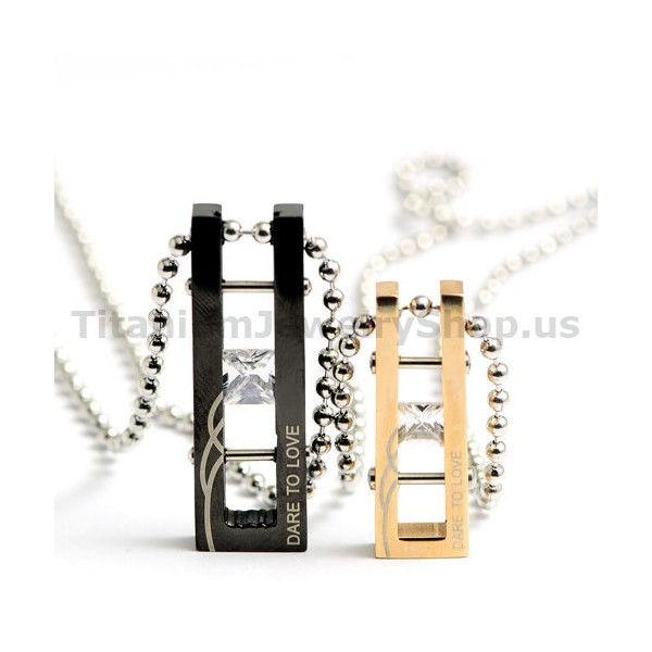"DARE TO LOVE" Lovers Titanium Pendants with Diamonds Valentine's Day Gifts - Free Chains