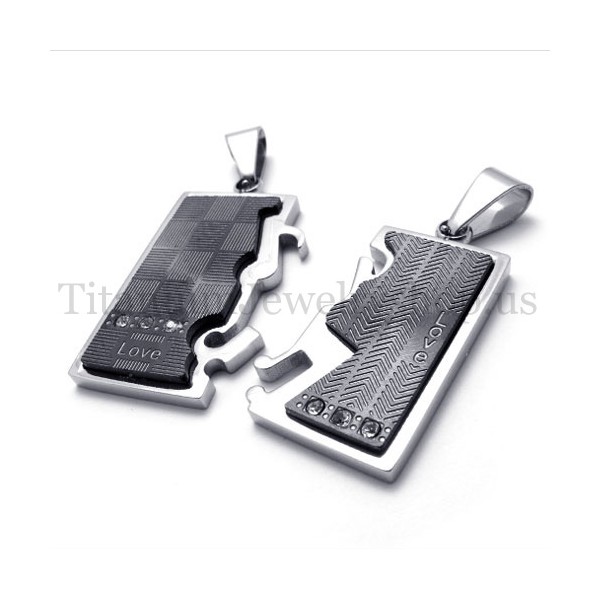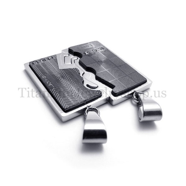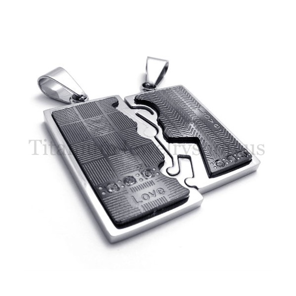 black two layer interlocking lovers titanium pendant 19992