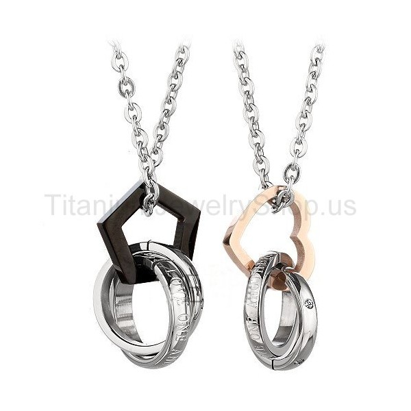 Metal: Titanium His size: 3/4" Diameter Her size: 2/3" Diameter Chain: Titanium, 20"