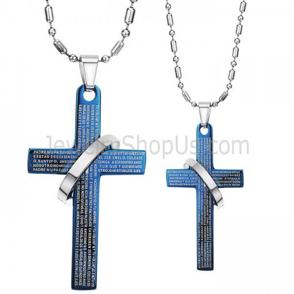 Titanium Blue Cross Bible Lovers Pendants with Free Chains C287