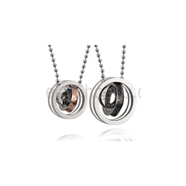 Titanium Black and Rose Gold Rings Lovers Pendants with Free Chains C491