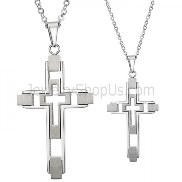 Titanium Silver Inlay Cross Pendants with Free Chains 108