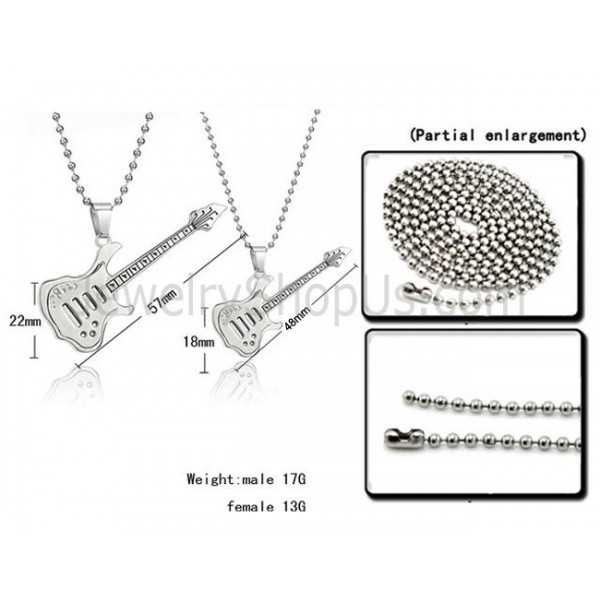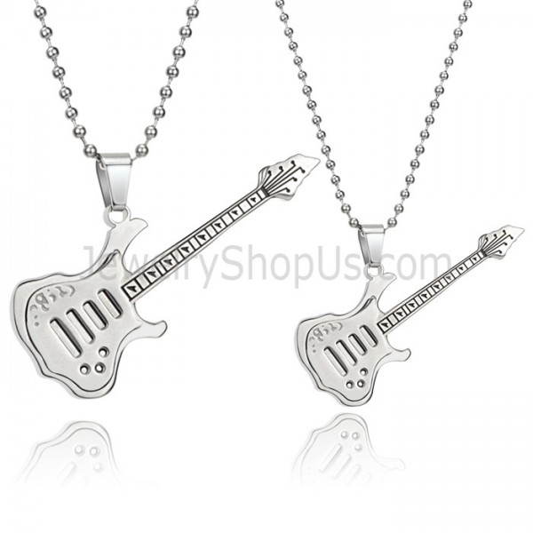 Titanium Silver Guitar Lovers Pendants with Free Chains C343