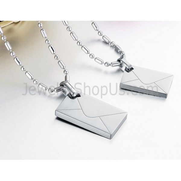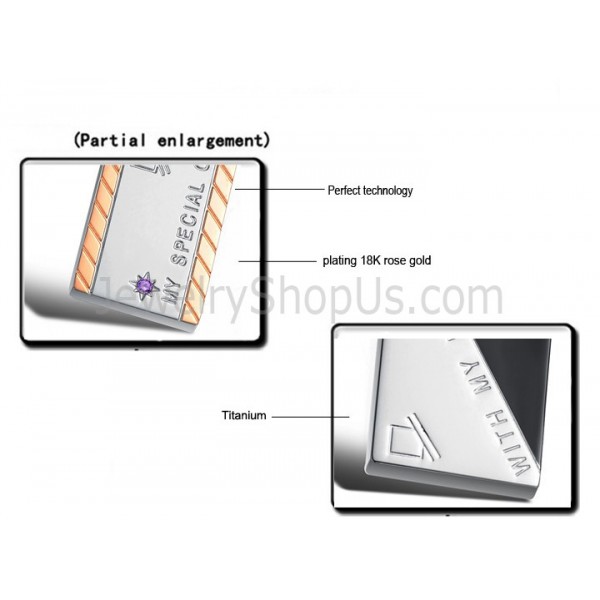 Titanium Rose Gold Letter and Free Chains Rectangle Lovers Pendants wiht Rhinestones and Free Chainse C726