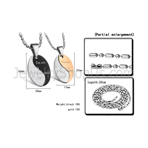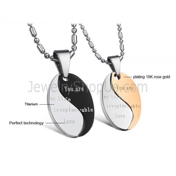 Titanium Black and Rose Gold "You Are My Life Irreplaceable Love" Lovers Pendants with Free Chains C628