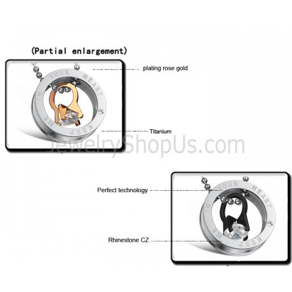 Titanium Black and Rose Gold Octopus Lovers Pendants with Rhinestone and Free Chains C698